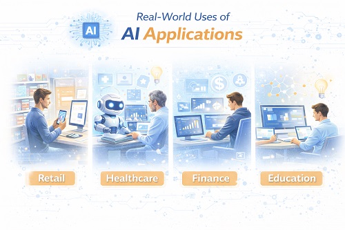 In retail, AI tracks what customers browse and purchase. Then it suggests relevant products, improving the shopping experience and increasing sales. In healthcare, AI systems organize patient records and assist doctors with faster analysis. Because of this, medical services become more efficient and timely.